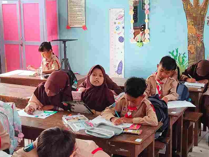 Peserta didik kelas 2 mengisi kekosongan waktu setelah SAS dengan mewarnai yang bertema " Lingkungan Bersih"